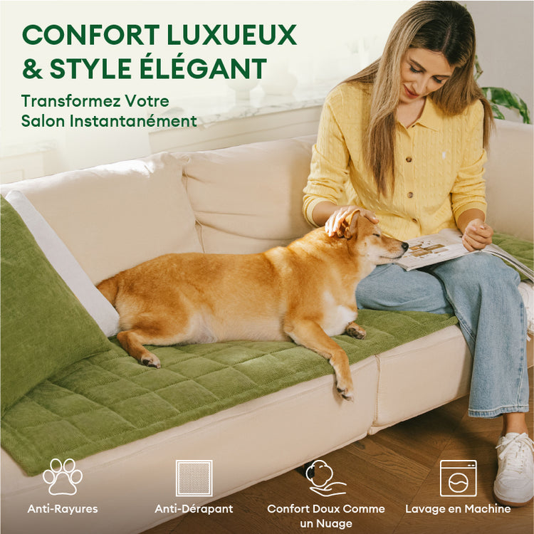 - Douceur en Chenille : Fabriquée avec un tissu en chenille ultra doux, cette housse offre une sensation moelleuse et confortable à laquelle les animaux s'attachent naturellement — plus de combats pour les empêcher de monter sur le canapé !