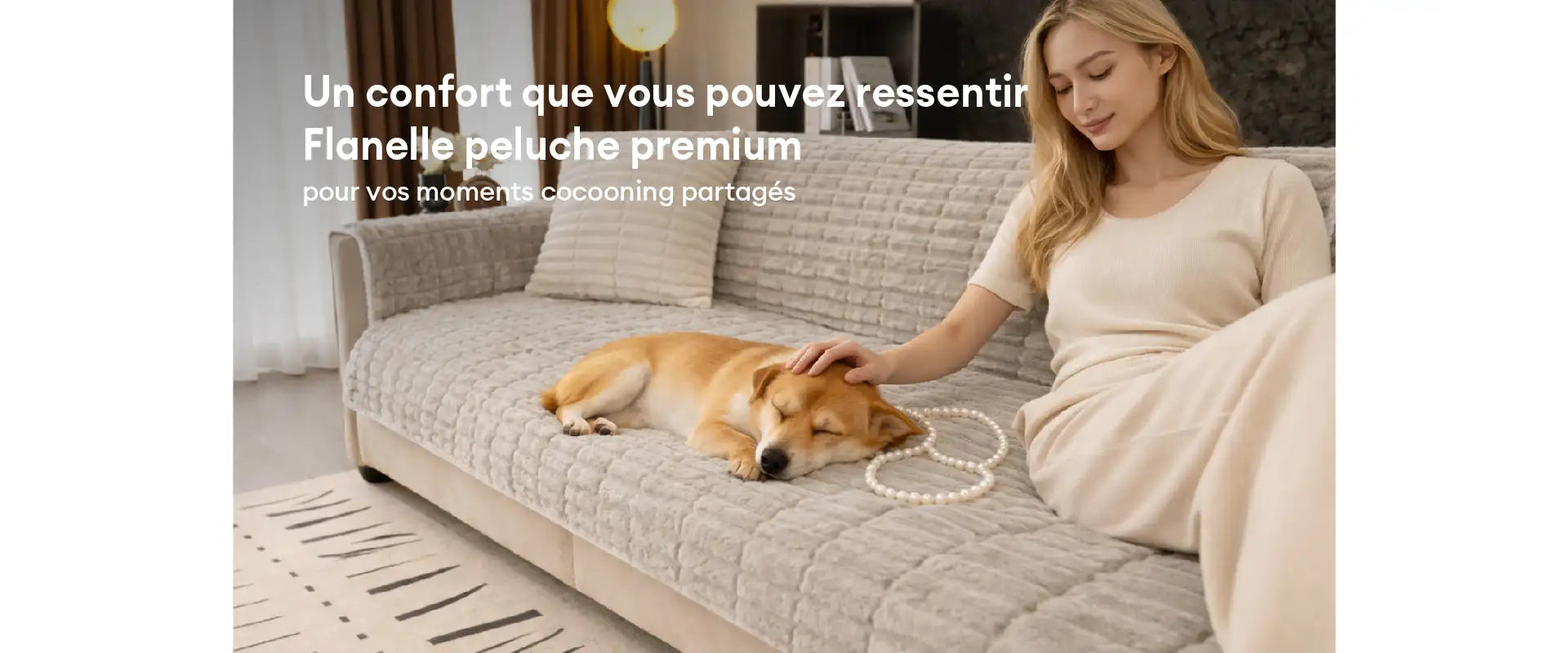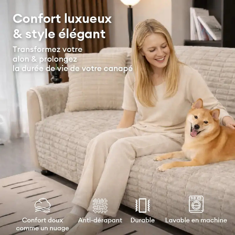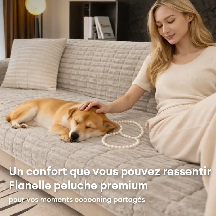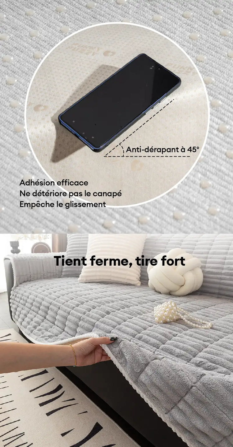 Housse de canapé en flanelle douillette une pièce protection antidérapante