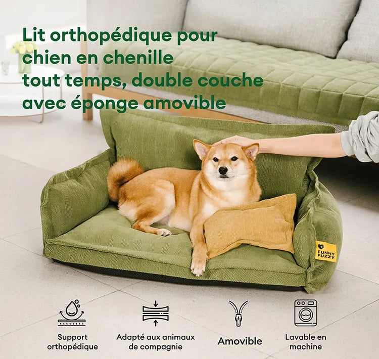 Panier orthopédique pour chien toutes saisons à double couche amovible – Rétro