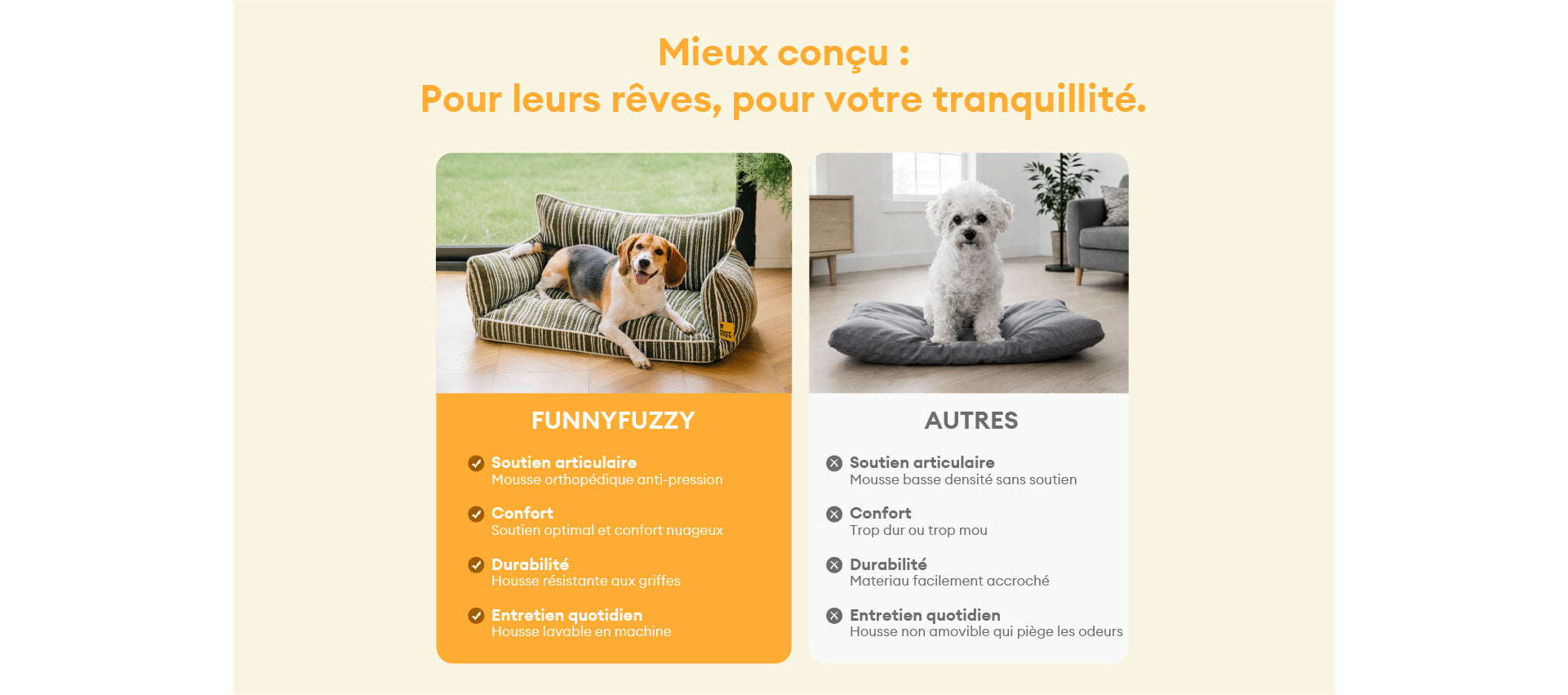 - Entretien Facile : Accidents ? Pattes boueuses ? Pas de problème. La housse amovible et zippée va directement dans la machine à laver, ressortant douce et impeccable à chaque fois.