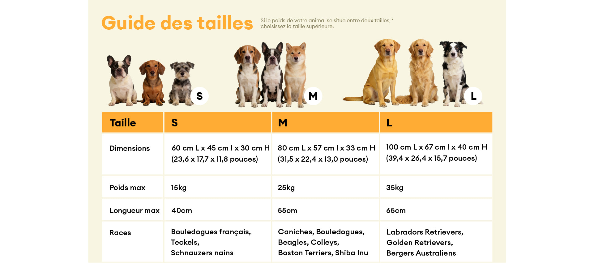 Guide des Tailles :
