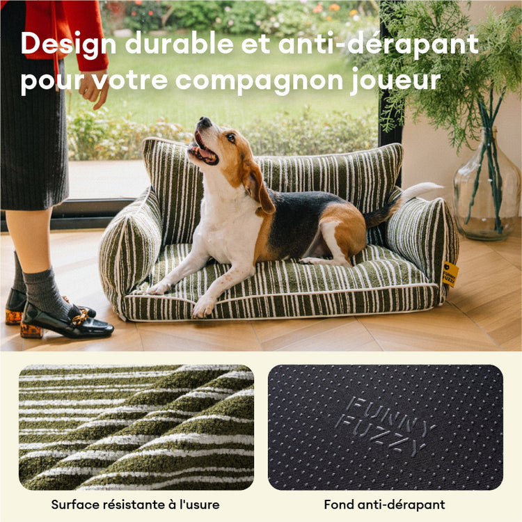 Prêt pour un confort de niveau supérieur pour les animaux de compagnie ? Le canapé-lit orthopédique FunnyfuzzySnugNest all-season associe un design chic à des caractéristiques réfléchies que votre chiot adorera. Que ce soit pour une sieste confortable ou pour s'étirer, ce lit offre un confort semblable à un nuage et un soutien articulaire toute l'année. Avec une facilité de nettoyage et une sécurité antidérapante, c'est le refuge douillet que votre ami à fourrure mérite vraiment.