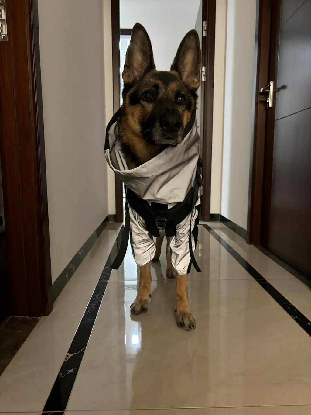 Ce manteau de pluie ultra-réfléchissant brille intensément sous les phares des véhicules, offrant une sécurité maximale à votre compagnon lors des promenades nocturnes ou par mauvais temps.