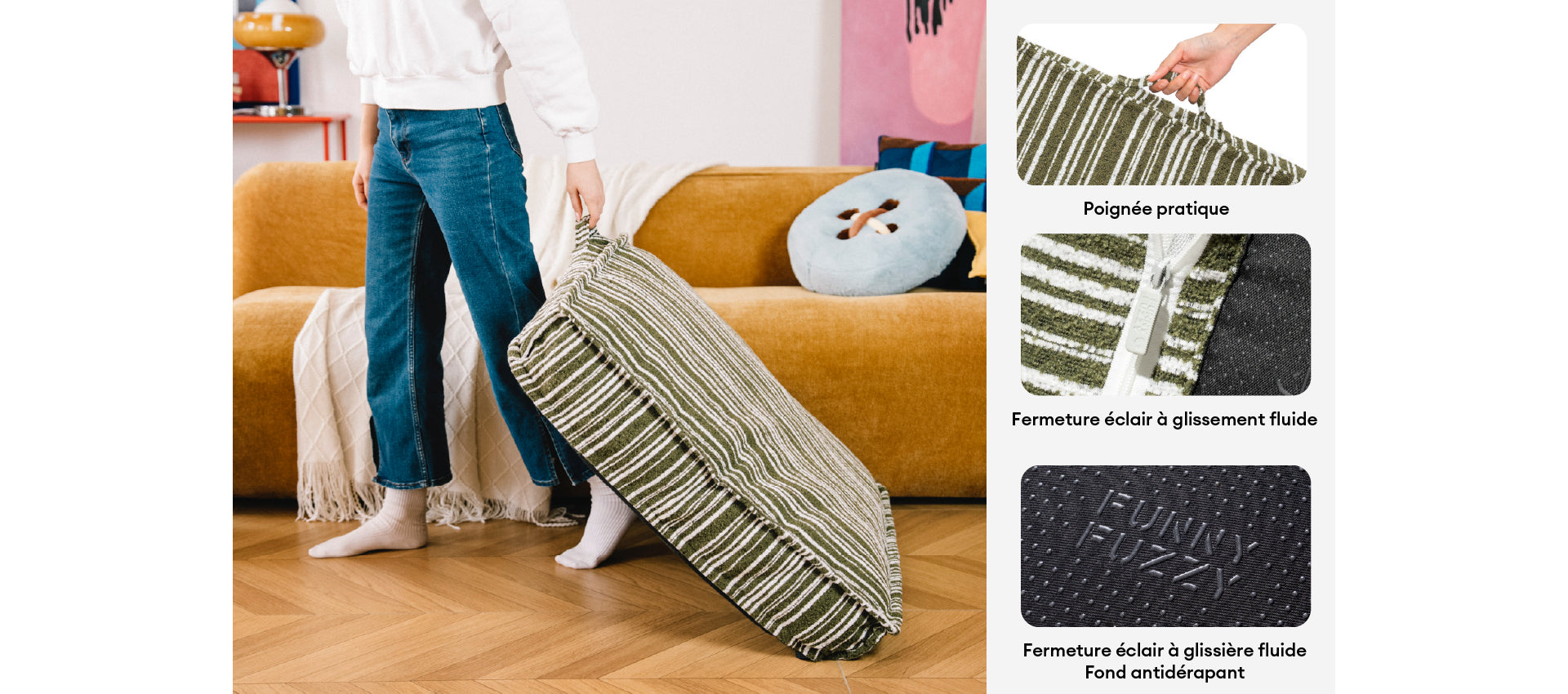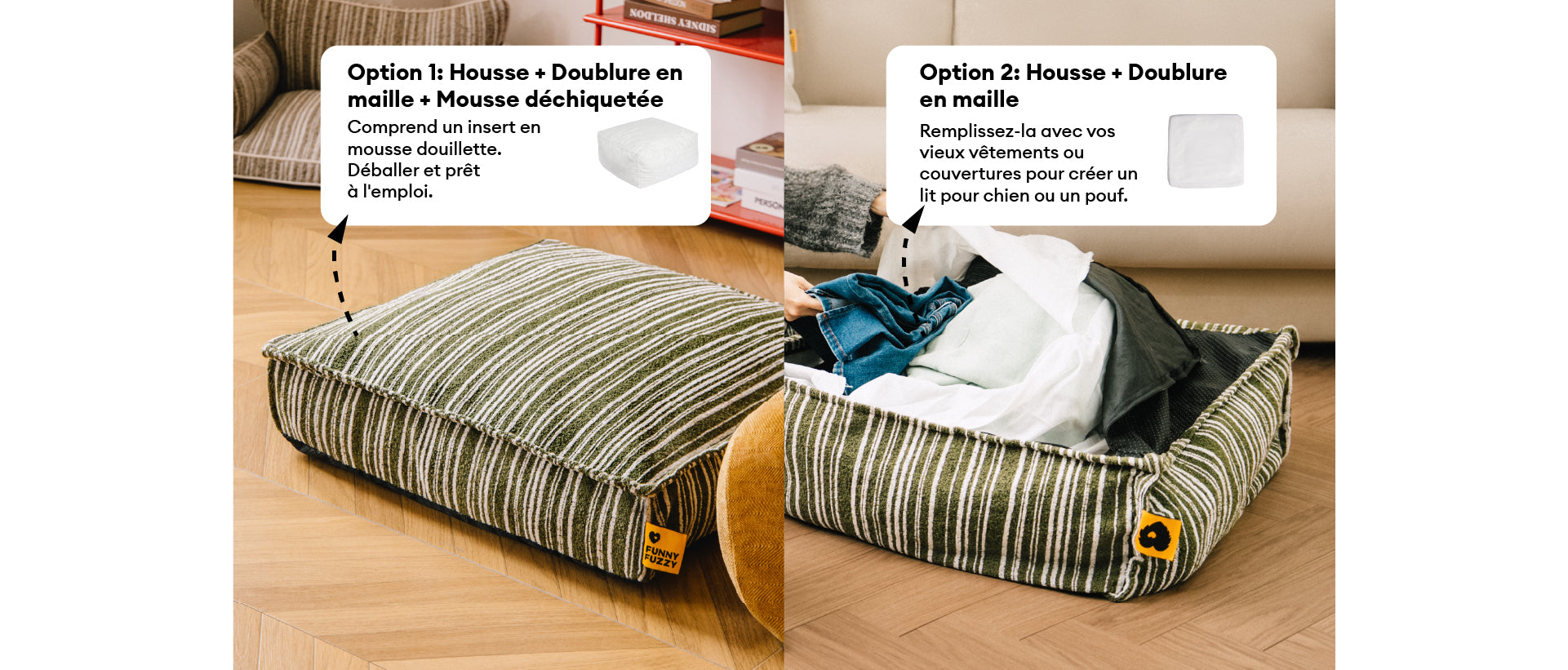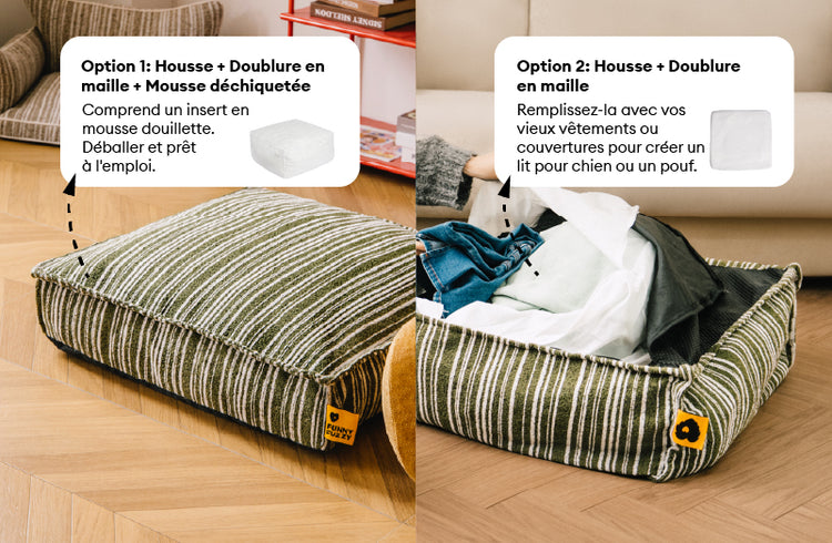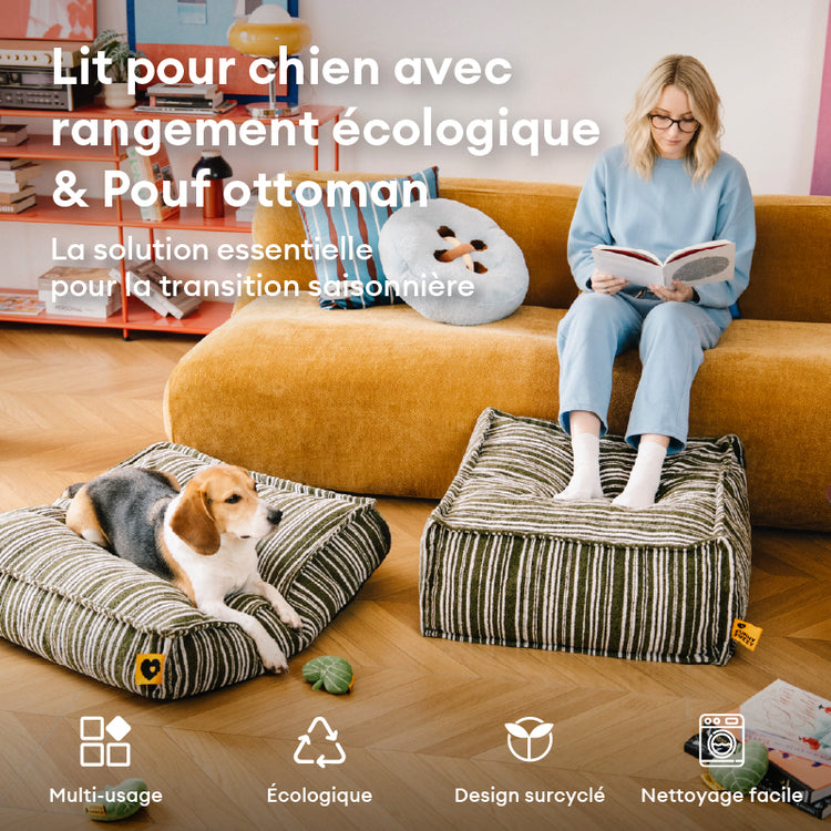 Pouf de rangement durable et lit pour chien - Funnyfuzzy SnugNest