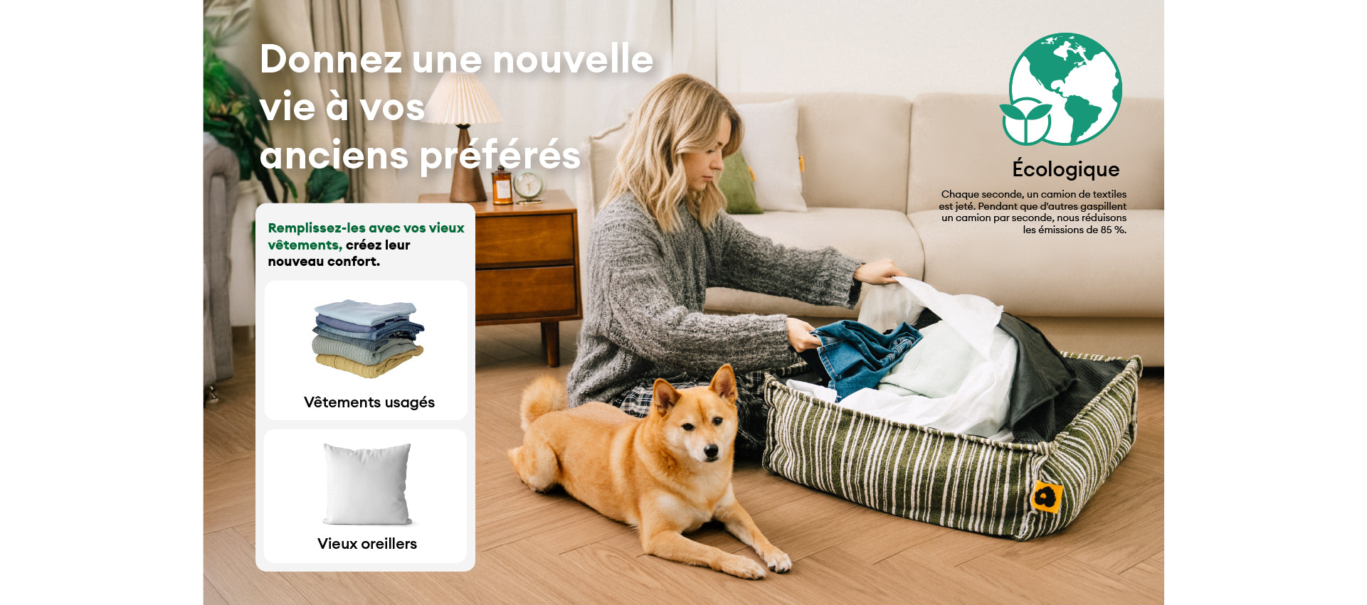 - Design recyclé, conçu avec soin : Offrez une belle seconde vie aux textiles pré-aimés. Un confort durable qui respecte votre animal et la planète.