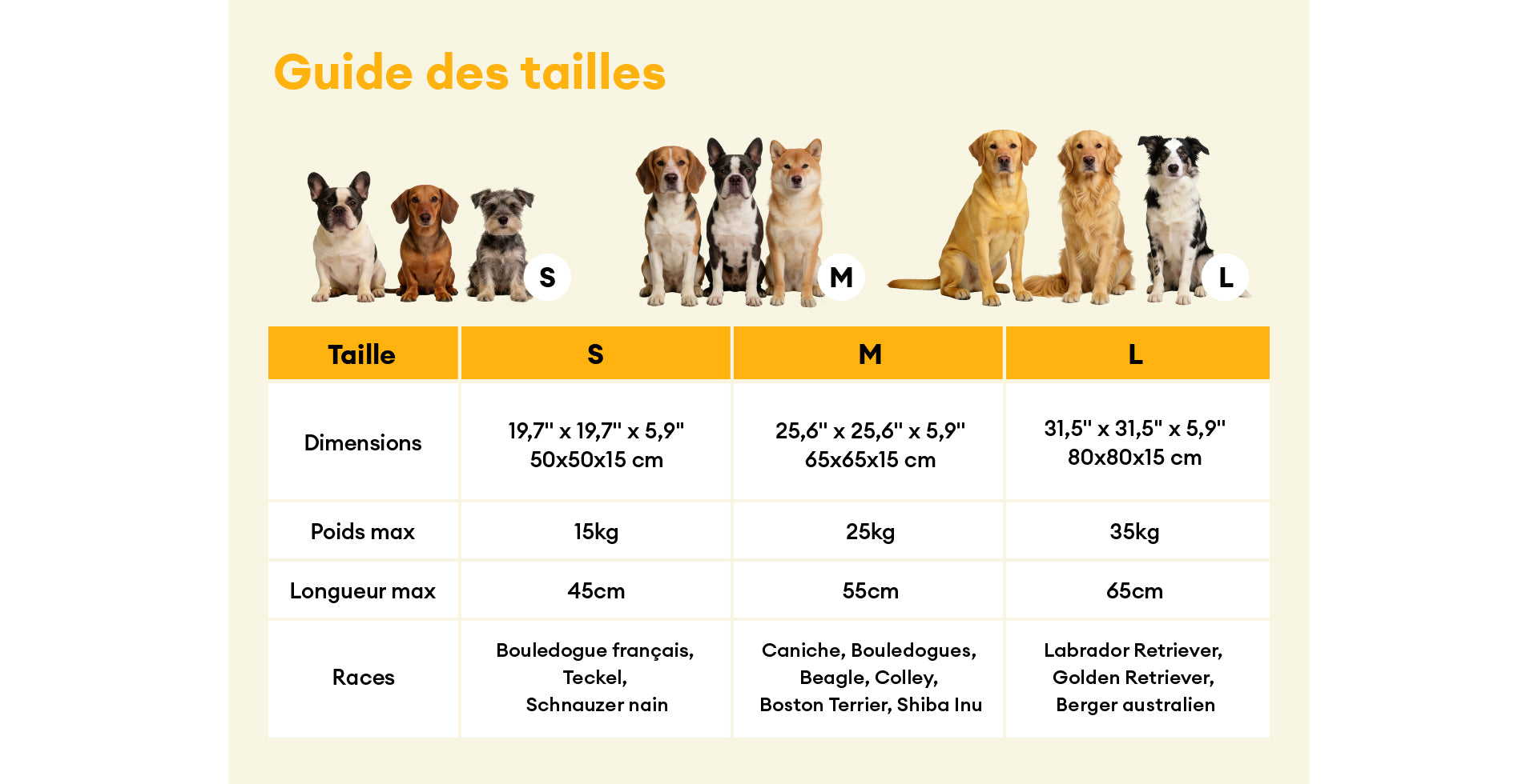 Guide des tailles :